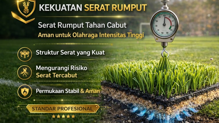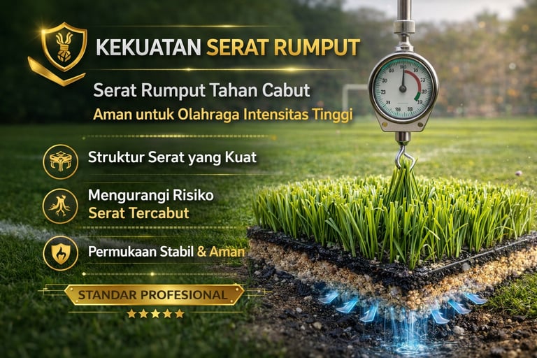 Struktur serat yang kuat dirancang untuk menjaga kestabilan permukaan dan mengurangi risiko serat tercabut, mendukung keamanan dan kenyamanan permainan.