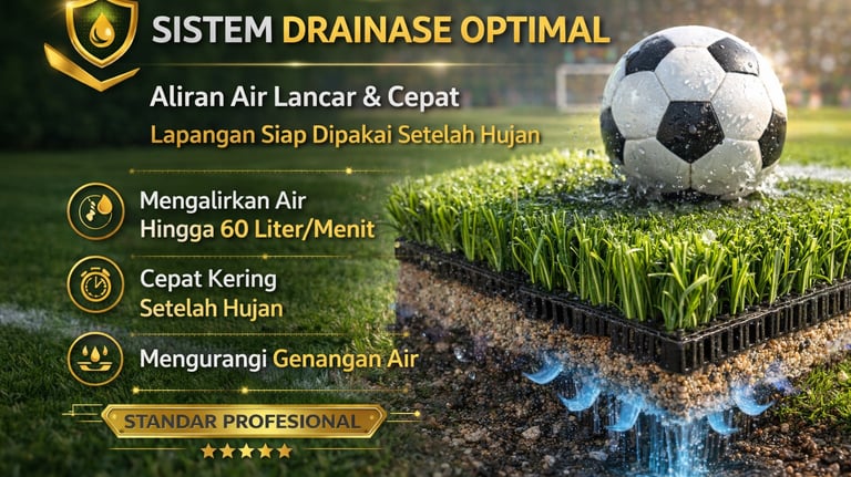 Sistem drainase yang baik memungkinkan air mengalir dengan cepat, sehingga lapangan tetap dapat digunakan dalam berbagai kondisi cuaca.